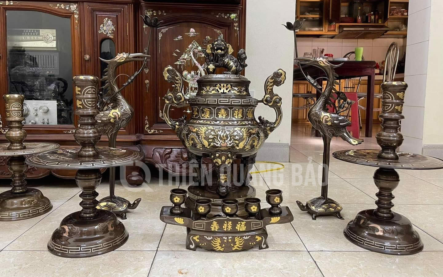 Bộ đỉnh đồng được dát điểm vàng